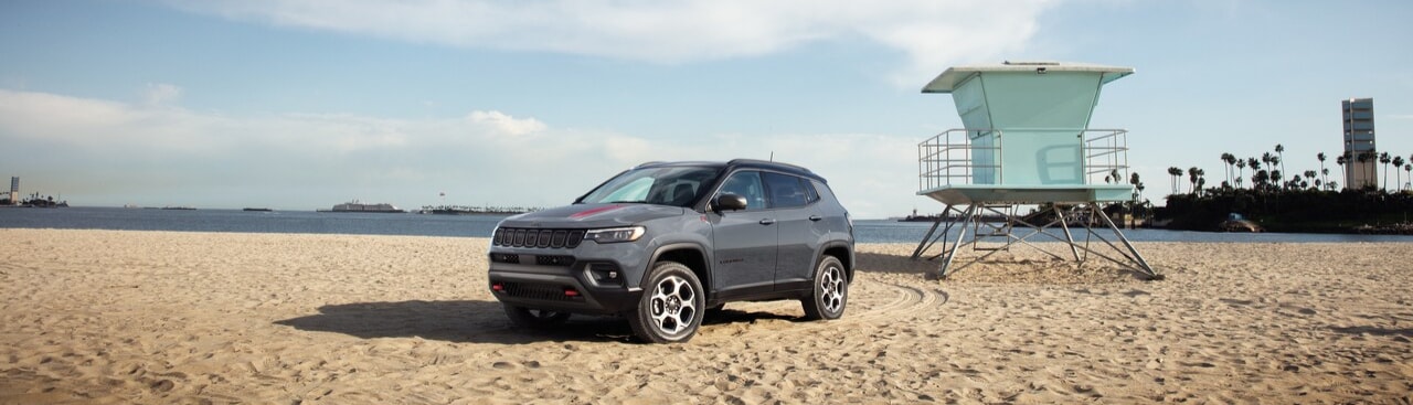 Standard feature highlights include a 10.1-inch touchscreen with wireless Apple CarPlay and Android Auto and a full suite of advanced driver aids. The Jeep Compass can also be upgraded with amenities like heated/ventilated seats, driver memory settings, a panoramic sunroof, and more.