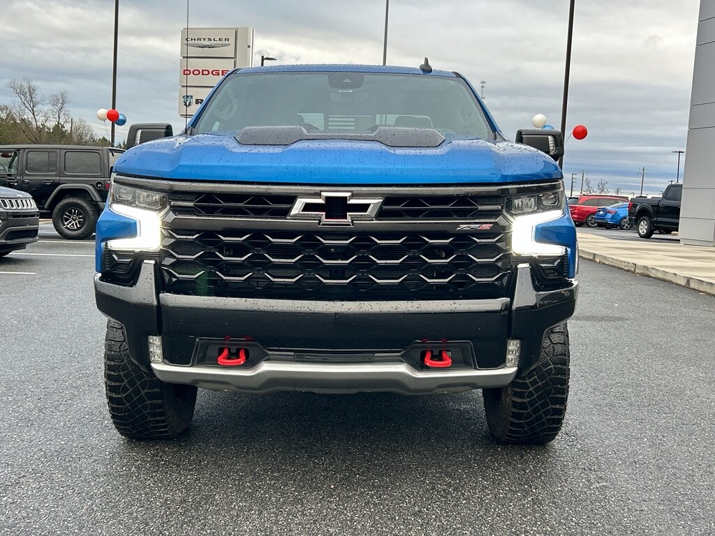 Technology Package: Power Tilt and Telescoping Steering Column; 15 Diagonal Multicolor Head-Up Display; Rear Camera Mirror; Adaptive Cruise Control. Preferred Equipment Group 3LT: Trailer Side Blind Zone Alert; Driver Memory; Perforated Leather Seat Trim; SiriusXM with 360L; Power Sliding Rear Window with Rear Defogger; Safety Alert Seat; Trailer Camera Provisions; Electric Rear-Window Defogger; Rear Park Assist; Theft Deterrent System (unauthorized Entry); Front Rainsensing Wipers; Heavy-Duty Air Filter; Skid Plates; Compass; Heated Steering Wheel; 120-Volt Instrument Panel Power Outlet; Heated Driver and Front Outboard Passenger Seats; Wireless Charging; Front Bucket Seats; Color-Keyed Carpeting Floor Covering; OnStar and Chevrolet Connected Services Capable; 2nd Row Heated Outboard Seats; ZR2 Suspension Package; Power Front Passenger Windows with Express Up/down; 12.3 Multicolor Reconfigurable Digital Display; High Gloss Black Mirror Caps; Power Rear Windows with Express Down; Integrated Trailer Brake Controller; HD Surround Vision; Ventilated Driver and Front Passenger Seats; Manual Tilt/telescoping Steering Column; Keyless Open and Start; Perimeter Lighting; Auto-Dimming Inside Rearview Mirror; LED Cargo Area Lighting; Bluetooth For Phone; Remote Vehicle Starter System; Trailering App; Hill Descent Control; Floor Mounted Center Console; 170 Amp Alternator; 6.2L EcoTec3 V8 Engine; Bed View Camera; Rear Cross Traffic Alert-Braking; Electrical Steering Column Lock; Trailering Package; Wireless Phone Projection; Up-Level Rear Seat with Storage Package; Standard Tailgate; 2 USB Data Ports; Front LED Fog Lamps; 18 Aluminum Spare Wheel; Steering Wheel Audio Controls; Dual Rear USB Ports (charge Only); Universal Home Remote; 2-Speed Transfer Case; Deep-Tinted Glass; 10-Way Power Driver Seat with Lumbar; All-Weather Floor Liner; Chevytec Spray-On Black Bedliner; Dual Exhaust; Electronic Cruise Control; Chevy Safety Assist; Performance Red Recovery Hooks; Hitch Guidance with Hitch View; Power Front Windows with Driver Express Up/down; Wrapped Steering Wheel; EZ Lift Power Lock and Release Tailgate; Rear Pedestrian Alert; 10-Way Power Passenger Seat Adjuster with Lumbar; Outside Heated Power-Adjustable Mirrors; Rear Wheelhouse Liners; Auto-Locking Rear Differential. Off-Road High Clearance Steps. Power Sunroof. Glacier Blue Metallic. Power Tailgate. **Equipment listed is based on original vehicle build and subject to change. Please confirm the accuracy of the included equipment by calling the dealer prior to purchase.**