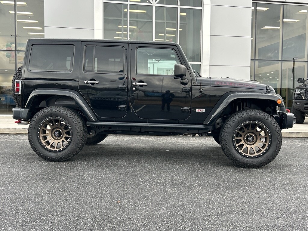 Quick Order Package 24J 10th Anniversary: Steel Front Bumper; Rubicon 10TH Anniversary Badge; IP Grab Handle with 10TH Anniversary; LT265/70R17E OWL On/off Road Tires; Heated Front Seats; Rubicon 4X4 Specs Plate; Silver Interior Accents; Premium Black Sunrider Soft Top; MOPAR Slush Mats; Rubicon 10TH Anniversary Edition; Rubicon 10TH Anniversary Leather Seats; Chrome/leather Wrapped Shift Knob; MOPAR Rock Rails; Premium EVIC Message Center; Rubicon Hood Decal; 17 X 7.5 Rubicon 10TH Anniversary RD Wheels; Hood with Power Dome; Red Trail Rated Badge; Red Front and Rear Tow Hooks; Black Fuel Filler Door; Steel Rear Bumper. Connectivity Group: Vehicle Information Center; Tire Pressure Monitoring Display. Dual Top Group. Smoker's Group: Cigar Lighter; Removable Ash Tray. Quick Order Package 23J 10TH Anniversary: Steel Front Bumper; Rubicon 10TH Anniversary Badge; IP Grab Handle with 10TH Anniversary; LT265/70R17E OWL On/off Road Tires; Heated Front Seats; Rubicon 4X4 Specs Plate; Silver Interior Accents; Premium Black Sunrider Soft Top; MOPAR Slush Mats; Rubicon 10TH Anniversary Edition; Rubicon 10TH Anniversary Leather Seats; Chrome/leather Wrapped Shift Knob; MOPAR Rock Rails; Premium EVIC Message Center; Rubicon Hood Decal; 17 X 7.5 Rubicon 10TH Anniversary RD Wheels; Hood with Power Dome; Red Trail Rated Badge; Red Front and Rear Tow Hooks; Black Fuel Filler Door; Steel Rear Bumper. Uconnect 730N CD/DVD/MP3/HDD/navigation Radio. Body Color 3-Piece Hard Top. Remote Start System. Supplemental Front Seat Side Air Bags. Body Color Fender Flares. 4.10 Rear Axle Ratio. Air Conditioning with Auto Temp Control. **Equipment listed is based on original vehicle build and subject to change. Please confirm the accuracy of the included equipment by calling the dealer prior to purchase.**